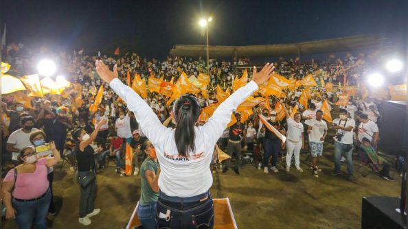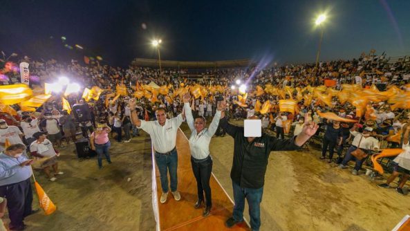 Reunida con cerca de 7 mil personas que se han sumado a la estructura de este proyecto de gobierno, la candidata a la alcaldía por Movimiento Ciudadano, afirmó llena de emoción ante un escenario que vibraba mostrando su respaldo, que la ‘Fuerza Naranja’ es el alma de este gran movimiento por la defensa de Puerto Vallarta, quienes motivan e inspiran ese trabajo diario que desde las calles de esta ciudad, se ha venido realizando para escuchar a la gente, para generar acciones que de verdad atiendan sus necesidades y seguir avanzando en lo que hoy se ha emprendido para transformar las colonias, y que requiere de su continuidad.