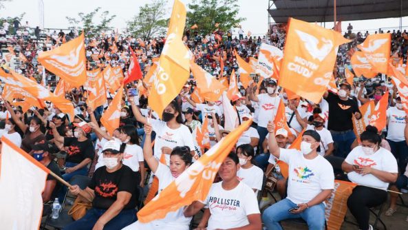 Reunida con cerca de 7 mil personas que se han sumado a la estructura de este proyecto de gobierno, la candidata a la alcaldía por Movimiento Ciudadano, afirmó llena de emoción ante un escenario que vibraba mostrando su respaldo, que la ‘Fuerza Naranja’ es el alma de este gran movimiento por la defensa de Puerto Vallarta, quienes motivan e inspiran ese trabajo diario que desde las calles de esta ciudad, se ha venido realizando para escuchar a la gente, para generar acciones que de verdad atiendan sus necesidades y seguir avanzando en lo que hoy se ha emprendido para transformar las colonias, y que requiere de su continuidad.