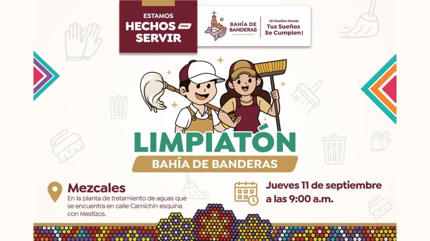 El Gobierno Municipal de Bahía de Banderas anuncia que la próxima jornada de limpieza, descacharrización y abatización, “Limpiatón”, que se llevará a cabo en la localidad de Mezcales el próximo jueves 11 de septiembre a partir de las 9:00 de la mañana.