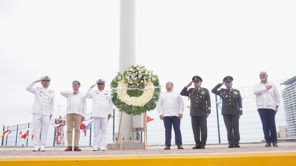 En el marco de esta ceremonia, se recordó a quienes entregaron su vida en cumplimiento de su deber, con la evocación a los marinos caídos, a cargo del Capitán de Puerto de Nuevo Vallarta, Nayarit, José Leopoldo López Agraz, y posteriormente se colocó una ofrenda floral y se montó una guardia de honor en su memoria.