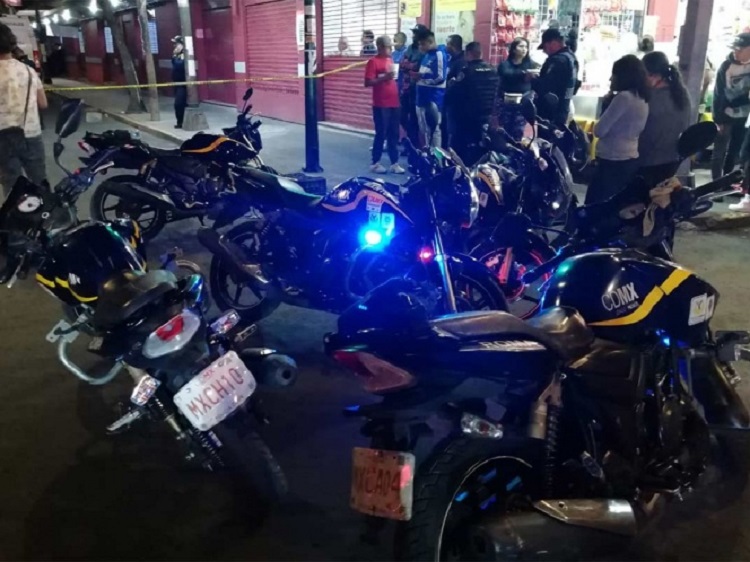 Policías de investigación, peritos y el agente del Ministerio Público de la coordinación territorial Cuauhtémoc 4 investigan el asesinato de una mujer la noche del jueves, por dos sujetos a bordo de motocicleta que le dispararon en la cabeza cuando compraba unos postres.