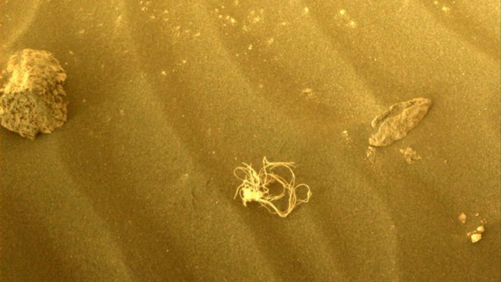 La red no es la primera pieza de escombros que quedó del aterrizaje del rover Perseverance que después apareció en el camino del rover.