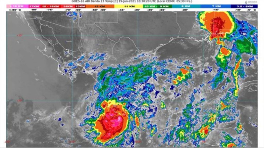 Durante las próximas horas, mantendrá lluvias puntuales extraordinarias (mayores a 250 milímetros [mm]) en Colima, Jalisco y Michoacán; puntuales torrenciales (de 150. 1 a 250 mm) en Guerrero y Nayarit, y lluvias muy fuertes (de 50.1 a 75 mm) en Durango, Guanajuato y Sinaloa.
