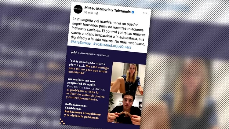 «La misoginia y el machismo ya no pueden seguir formando parte de nuestras relaciones íntimas y sociales. El control sobre las mujeres causa un daño irreparable a la autoestima, a la dignidad y a la vida misma. No más machismo», escribió en Twitter el Museo Memoria y Tolerancia.