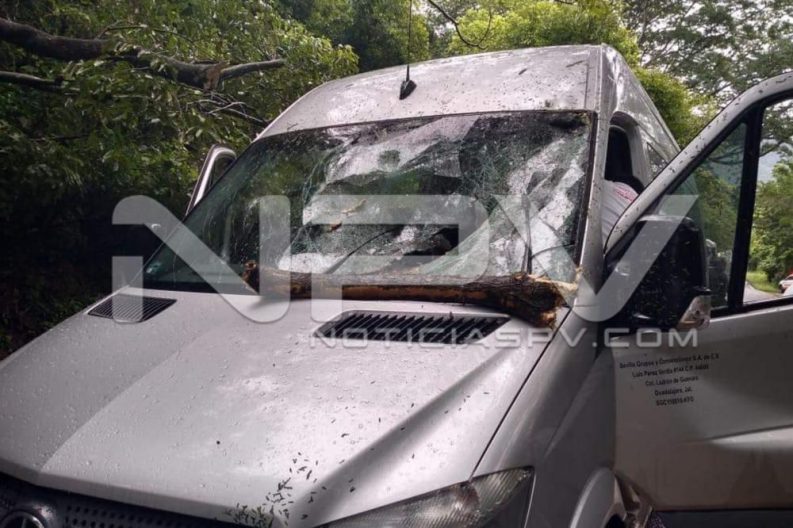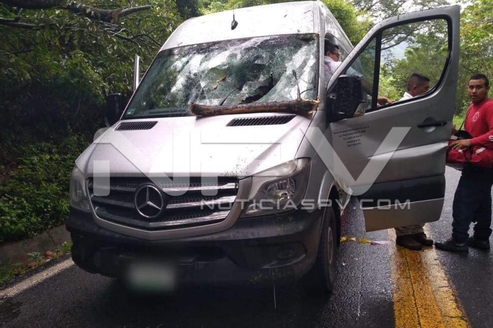Por tal motivo al sitio indicado se dirigieron los elementos de Protección Civil con base regional en Rincón de Guayabitos, así como también los socorristas de la Cruz Roja de Compostela, quienes al arribar al kilómetro 50, ubicado cerca del poblado de Las Varas, se percataron del accidente, informando que se trata de una camioneta tipo panel de la marca Mercedes Benz, a la que al ir circulando por el carril con dirección de Tepic hacia Puerto Vallarta, de repente le cayó la rama de un árbol provocándole lesiones al conductor.