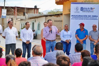 Con una inversión de 5.1 millones de pesos de recursos federales y municipales, el Alcalde Jaime Cuevas Tello, acompañado por su esposa, la presidenta del DIF Municipal, L.T.S. Ana Esperanza Berumen de Cuevas, entregó la nueva obra de pavimentación en concreto hidráulico de la calle Allende en Valle de Banderas.