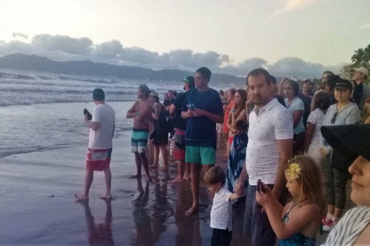 Esta actividad que es un atractivo natural propio de las playas de la Bahía de Banderas que comparten Jalisco y Nayarit con sus municipios de Puerto Vallarta, Cabo Corrientes y Bahía de Banderas, respectivamente, se dio por la tarde de este jueves 2 de enero 2020 lo que llamó la atención de turistas y locales que paseaban por esta playa de Nuevo Vallarta.