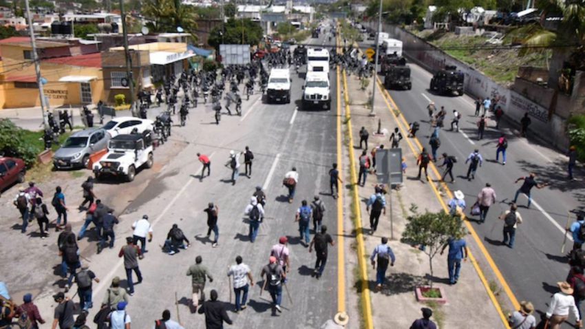 Guillermo Macías Marrón, dirigente de los manifestantes, aseguró que los policías estatales y la Guardia Nacional violaron los protocolos de respeto a los derechos humanos durante el enfrentamiento de este lunes, lo que llevó a que fueran retenidos.