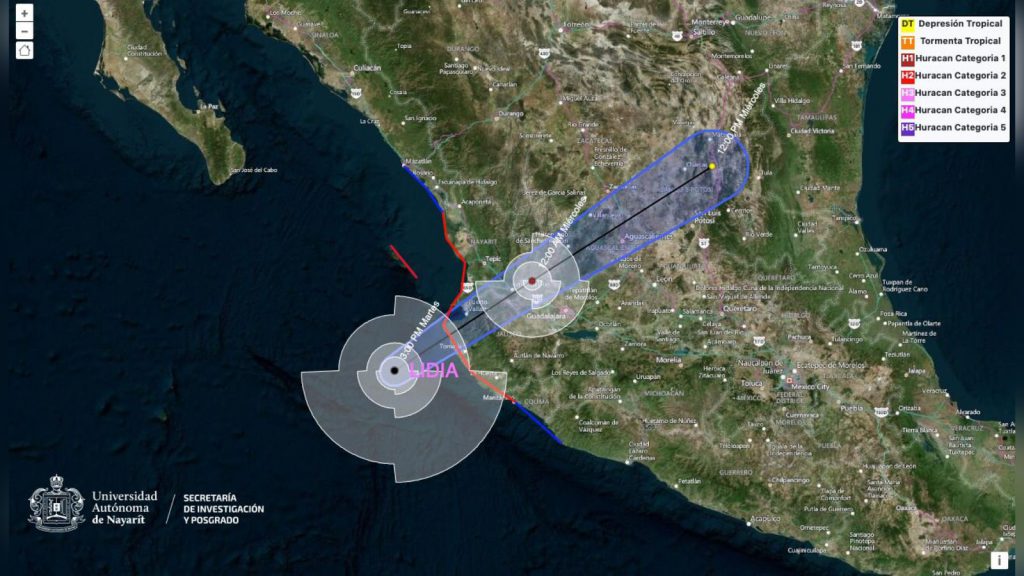 El huracán Lidia se intensifica rápidamente y alcanza la categoría 4 con vientos máximos sostenidos de 220 km/h. Se pronostica un impacto inminente en Cabo Corrientes, Puerto Vallarta y Bahía de Banderas esta tarde-noche.