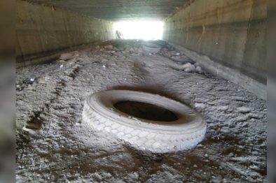 Sus viejas llantas caen al cauce del arroyo Jagüey, estas están ahora bajo el puente de la carretera 200 listas para que en la primera corriente de lluvias vayan a terminar en la Laguna del Quelele, de Bahía de Banderas, Nayarit, reportan vecinos de la zona. El reporte ya se hizo a Desarrollo Urbano y Medio Ambiente