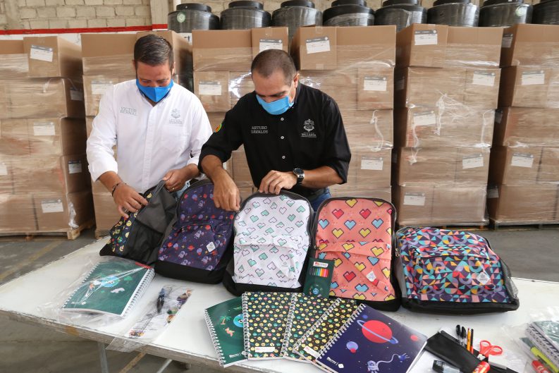 “Vamos un paso adelante, trabajando, ya nos llegaron las primeras 9 mil mochilas, vamos a seguir recibiendo en la próxima semana para tener listo los útiles, uniformes y zapatos, antes de que empiece el ciclo escolar, para que los padres no gasten, para que ahorren, sobre todo ahorita que la economía de todos los que vivimos aquí está decaída”, señaló.