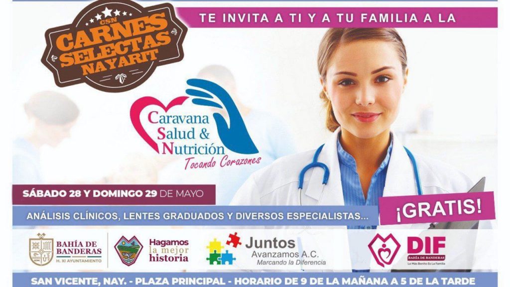 Los días 28 y 29 de mayo, de nueve de la mañana a cinco de la tarde, en la plaza principal de San Vicente, se ofrecerán servicios de medicina general, enfermería odontología, oftalmología, nutrición y análisis clínicos, a todas las personas que lo requieran y soliciten, tanto de Bahía de Banderas, Puerto Vallarta, e incluso visitantes. Cabe destacar que los servicios que ofrece esta caravana son completamente gratuitos, incluso los medicamentos y lentes para graduar.