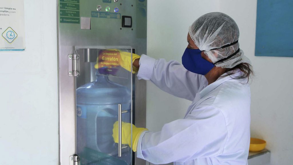 Enfatizó en la importancia de llevar el garrafón totalmente limpio y desinfectado, acudir con cubrebocas, guardar la sana distancia y utilizar el gel antibacterial, para cuidar la salud de los trabajadores de los Aguamáticos, así como de los beneficiarios y sus familias.