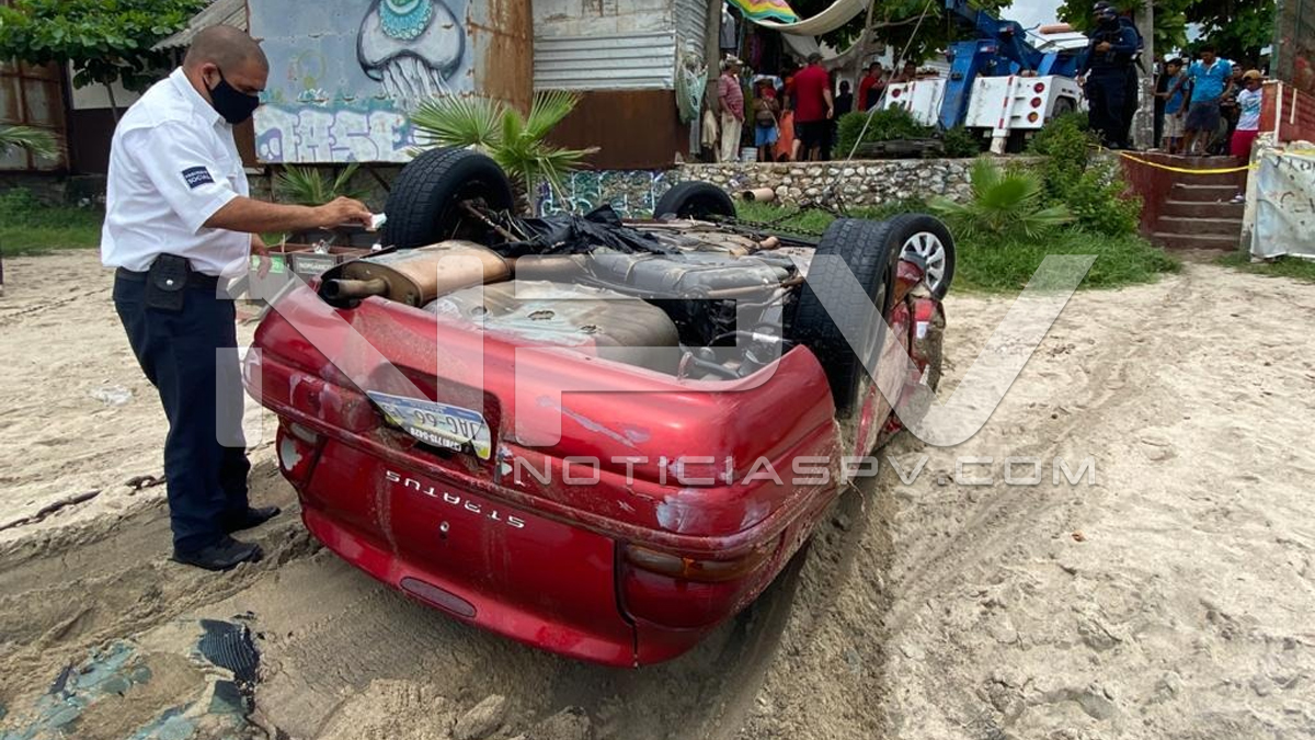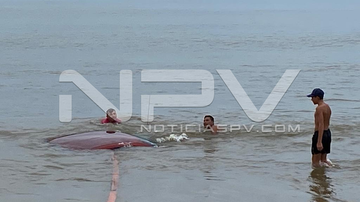 Vehículo arrastrado por la corriente en Arroyo El Indio, en Bucerías. El auto estaba estacionado y se lo lleva la corriente. Al parecer es el mismo vehículo localizado en playa de Bucerias frente a la desembocadura del Arroyo del Indio.