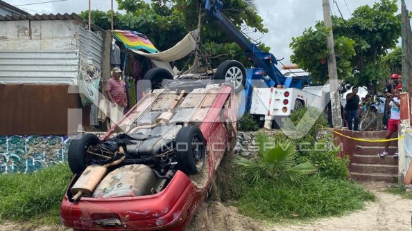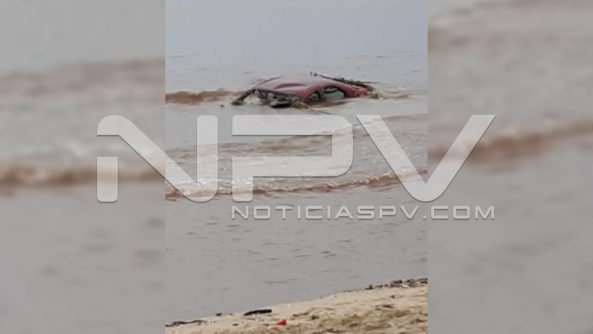 Vehículo arrastrado por la corriente en Arroyo El Indio, en Bucerías. El auto estaba estacionado y se lo lleva la corriente. Al parecer es el mismo vehículo localizado en playa de Bucerias frente a la desembocadura del Arroyo del Indio.