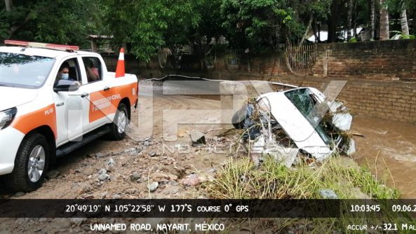 De acuerdo al reporte oficial del Gobierno de Bahía de Banderas, la lluvia registrada el día de hoy e las primeras horas dejó un salgo de dos vehículos arrastrados por el arroyo del Indio, en Bucerías, una persona arrastrada por las mismas aguas, y otro vehículo más el río que pasa por El Guamúchil.
