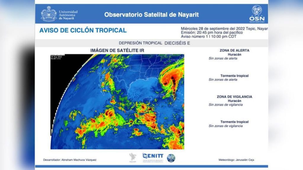 «Esta noche de jueves, a las 9:00 pm, se ha formado depresión tropical “Dieciséis E” a partir del disturbio tropical localizado frente a las costas de Guerrero», difunde el SMN.