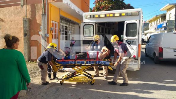 Un masculino resultó lesionado tras ser aplastado por un muro construido de bloque quien fue auxiliado y llevado a recibir atención médica a un hospital