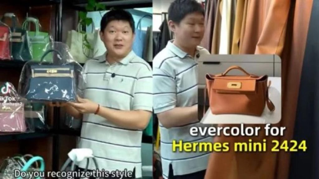 Otro clip inicia con la frase “¿Reconoces este estilo? ¿Esta bolsa?”, mostrando un modelo similar al Kelly 25 de Hermès, cuyo valor en reventa puede alcanzar los 800 mil pesos mexicanos. El presentador explica que China no solo produce estas piezas, sino que cuenta con la capacidad de replicar cualquier material, color y acabado, a precios más bajos que los originales.