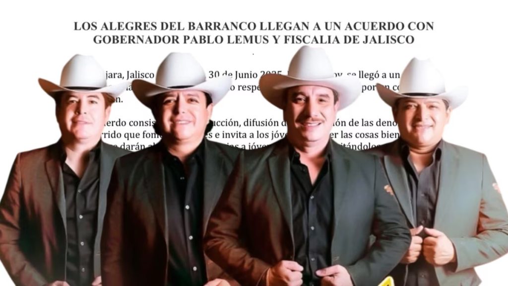 “No tenemos proceso penal abierto», celebraron Los Alegres del Barranco ante la suspensión condicional de su caso ante las autoridades de Jalisco, con quienes llegaron a un acuerdo tras la publicación del ‘anticorrido’ llamado ‘El consejo’.