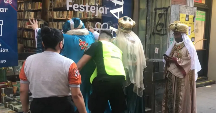 Entonces uno de los Reyes Magos le pide a la gente que mira indignada lo que ocurre: “después quiero que se saque una foto a la chica que nos denunció, por favor”, por lo que uno de los testigos dice que después pueden denunciar a la mujer.