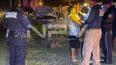 Fuerte accidente ocurrió la noche de este martes en el boulevard que lleva de San José del Valle a San Juan de Abajo, a la altura del fraccionamiento Jardines del Sol, en donde madre e hija salieron lesionadas, luego de que el vehículo en el cual viajaban, se estrelló con unas palmeras, al quedarse sin control.