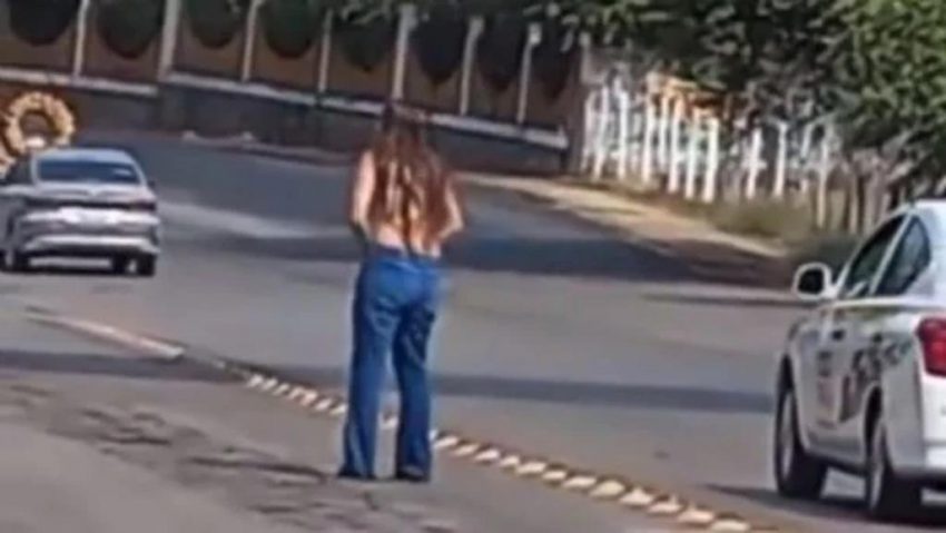 La mujer, que dijo ser maestra de educación básica, comenzó a gritar y se atravesó a la calle, donde golpeó el asfalto con un cinturón.