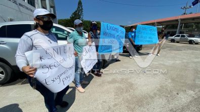Maestros sindicalizados sección 49 del SNTE, se manifestaron en la carretera a la altura del poblado del Macromodulo de Jarretaderas, para exigir al Gobierno del Estado de Nayarit, que preside Antonio Echevarría, el pago puntual de su quincena.