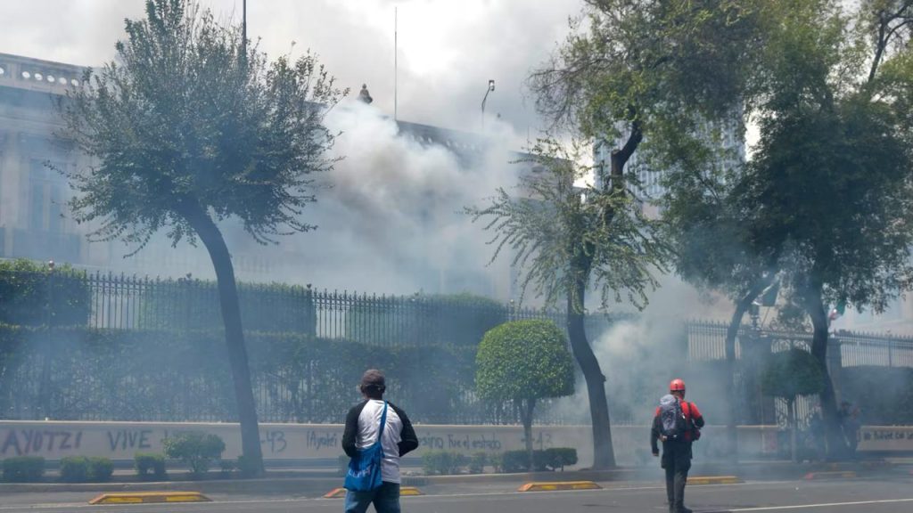 Decenas de manifestantes que claman justicia por la desaparición de los 43 estudiantes de Ayotzinapa, ocurrida en septiembre de 2014 y que en pocos días cumplirá 10 años, arrojaron este lunes explosivos a la Secretaría de Gobernación (Segob) en Ciudad de México.
