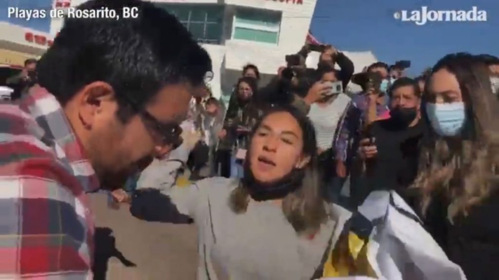 Playas de Rosarito, BC. Una mujer joven que reclamaba falta de tratamientos contra el cáncer dio una cachetada a un integrante de la ayudantía de la Presidencia, cuando éste intentaba hacerla a un lado del paso de la camioneta del presidente Andrés Manuel López Obrador.