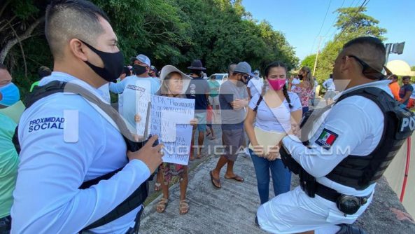 Un grupo de pobladores y ambientalistas cerraron hoy el paso vehicular en la carretera 200 hacia la comunidad de Mismaloya, debido a la construcción de un espigón en la playa, frente a los arcos, concretamente en Villas Paraíso.