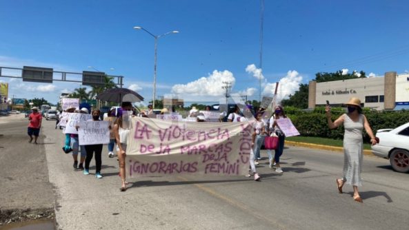 Al grito de “Ni una más, ni una más”, “No más feminicidios en Nayarit, ni Jalisco” mujeres marcharon por la carretera federal 200 hasta la Fiscalía General del estado de Nayarit en Bahía de Banderas para exigir que se frene la violencia contra las mujeres y se hagan las investigaciones correspondientes en el caso de los feminicidios de Amelia ”N” y Verónica ”N”, de 11 y 14 años.