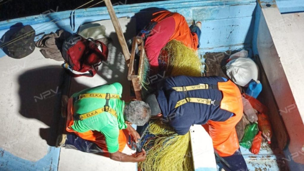 Durante citadas acciones, personal de CONAPESCA realizó la inspección de una embarcación menor, con tres tripulantes a bordo, la cual no contaba con permiso de pesca y portaba artes de pesca prohibidas.
