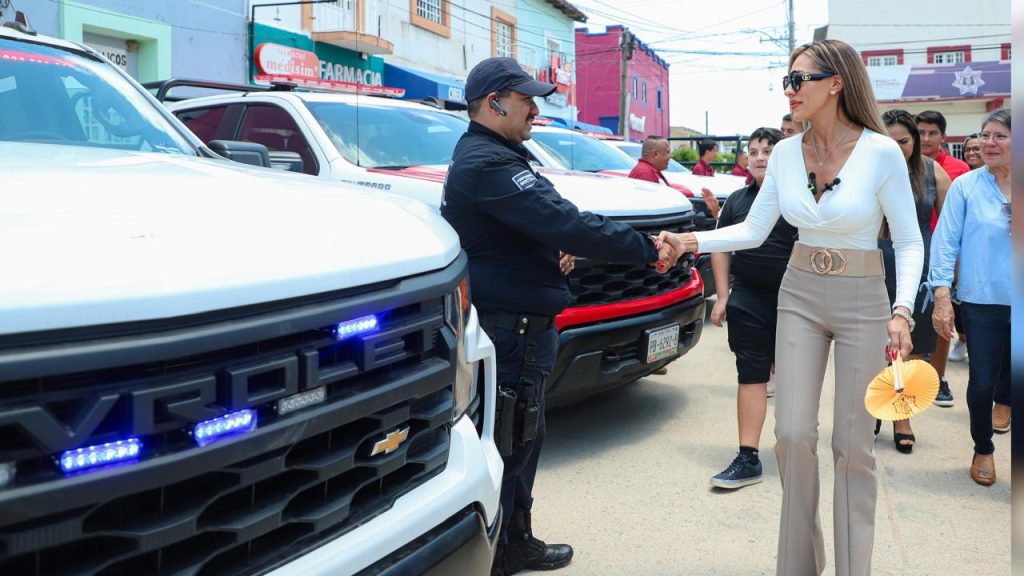 Bahía de Bandera Nay., 30 de agosto de 2024.- Bahía de Banderas cuenta a partir ahora con más y mejor equipamiento vehicular que servirá para dar un mejor servicio a la ciudadanía, así lo dijo la presidenta municipal, Lía Castro Díaz de León, quien este viernes hizo entrega de unidades de trabajo a las Direcciones de Seguridad Ciudadana y Tránsito, esto a través del Fondo de Aportaciones para el Fortalecimiento de los Municipios y de las Demarcaciones Territoriales (FORTAMUN), cuyo logro se dio gracias a la buena relación que existe entre los tres niveles de gobierno; municipal, estatal y federal.