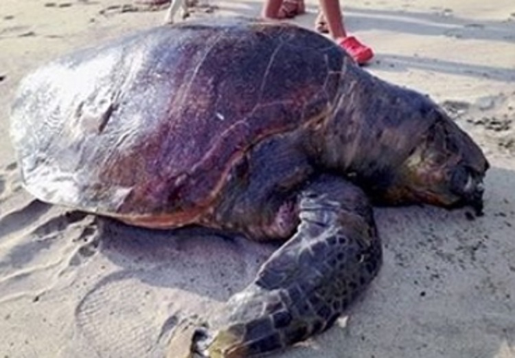 Quien realiza la denuncia, es una persona encontrándose en el mar, junto con algunas amistades, se encontró flotando en el mar a un cuerpo de tortuga.