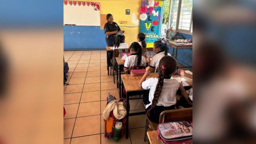 En esta semana le tocó el turno a la escuela primaria Constitución ubicada en la colonia Villa de Guadalupe, en donde los oficiales impartieron el programa “Me cuido y cuido a los demás”, un programa impulsado por la regidora edilicia de Seguridad Ciudadana, Sara Mosqueda Torres.