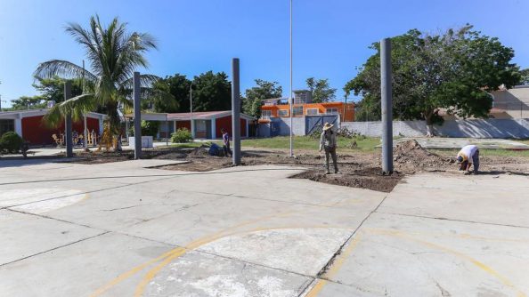 Para que los niños de Puerto Vallarta puedan realizar sus actividades académicas y recreativas, sin exponerse al sol o la lluvia una vez que regresen a clases presenciales, el Gobierno Municipal que encabeza Arturo Dávalos Peña, lleva a cabo la construcción de techados de patios cívicos en varias escuelas del municipio, a través del Consejo de Participación y Planeación para el Desarrollo Municipal (Copplademun)
