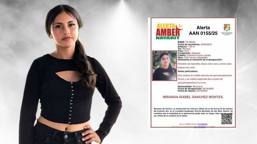 La Fiscalía General de Nayarit activó la Alerta Amber tras la desaparición de Miranda Sánchez Montes, vista por última vez en su escuela de Guadalupe Victoria.