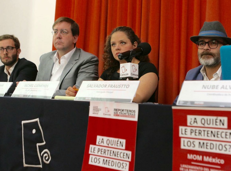 En conferencia de prensa, Emmanuel Colombie y Christian Mihr, representantes de RSF, así como Ixchel Cisneros, directora de Cencos, y los investigadores Nube Álvarez y Salvador Frausto, presentaron este jueves MOM-México, una plataforma que permite analizar cómo “la alarmante concentración de propiedad de los medios va a mano con la notoria inseguridad que viven los periodistas en México, muchos de los cuales ni siquiera pueden vivir de sus sueldos precarios”.