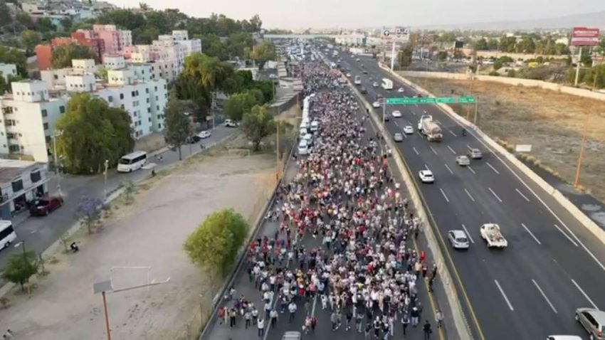 La manifestación ocupa todos los carriles de la vialidad de cuota en dirección a la Ciudad de México, por lo que el tránsito vehicular está siendo desviado por vías alternas como las avenidas Morelos, Central y José López Portillo.