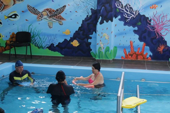 Ella actualmente recibe terapia en el tanque terapéutico para la rehabilitación de su hombro derecho, anteriormente fue atendida por su hombro izquierdo el cual le sanó muy bien.