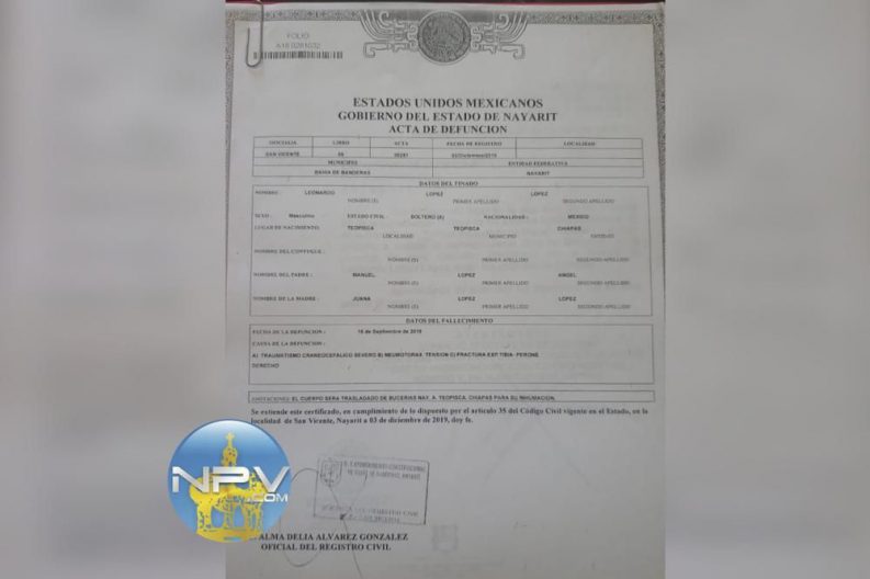 Se exige a la Fiscalía General de Nayarit publique factura del pago a la línea aérea que la Funeraria San José pago por el traslado del cuerpo del indígena, Leobardo López López quien falleció el pasado 16 de septiembre 2019 por atropellamiento. Porque es falso que a la funeraria se le pago 50 mil pesos con esta fecha. Apenas este sábado 28 de diciembre 2019 el cuerpo llegó a Tuxtla Gutiérrez, capital de Chiapas a las 3 de la tarde y a su comunidad arribó a las 10 y media de la noche. Ministerio Público de Jarretaderas, Sergio Virgen, no obligó al responsable pagar gastos funerarios, esto se dio luego de la presión de ciudadanos que vieron en estado de indefensión al hermano de Leobardo que desde principios de diciembre arribó a Bahía de Banderas en busca de justicia