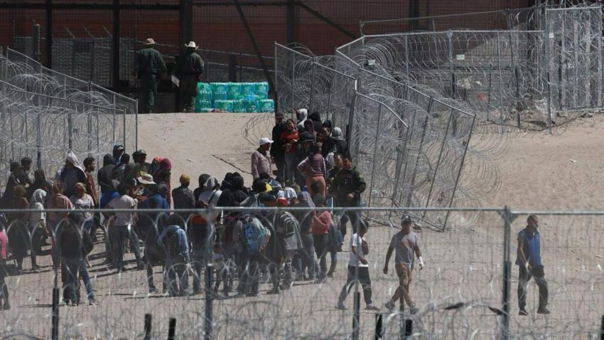 Unos 400 migrantes lograron entrar por la fuerza hasta el muro entre Ciudad Juárez (en México) y El Paso (Estados Unidos) este jueves, tras atravesar la alambrada y superar a un grupo de agentes de la Guardia Nacional estadounidense, para luego ser procesados por el departamento de Migración de Estados Unidos.