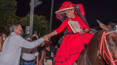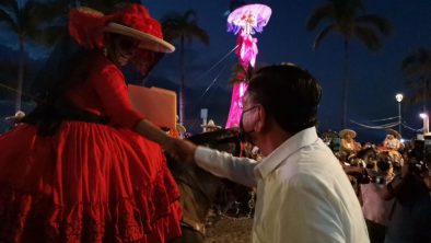 Al término del recorrido, el Profe Michel, acompañado de su esposa María de Jesús López Delgado, presidenta del Sistema DIF, así como por Ludvig Estrada Virgen, director de Turismo y Desarrollo Económico, entregó reconocimientos a los participantes frente a palacio municipal. “Me da mucho gusto que se hayan sumado a esta festividad, se trata de dos grandes tradiciones mexicanas, la de la charrería y la del Día de Muertos; en Puerto Vallarta nos engalanamos porque tenemos grandes amigos que son charros y escaramuzas, con vestimenta que tanto los distingue, ustedes son parte de nuestra cultura”.