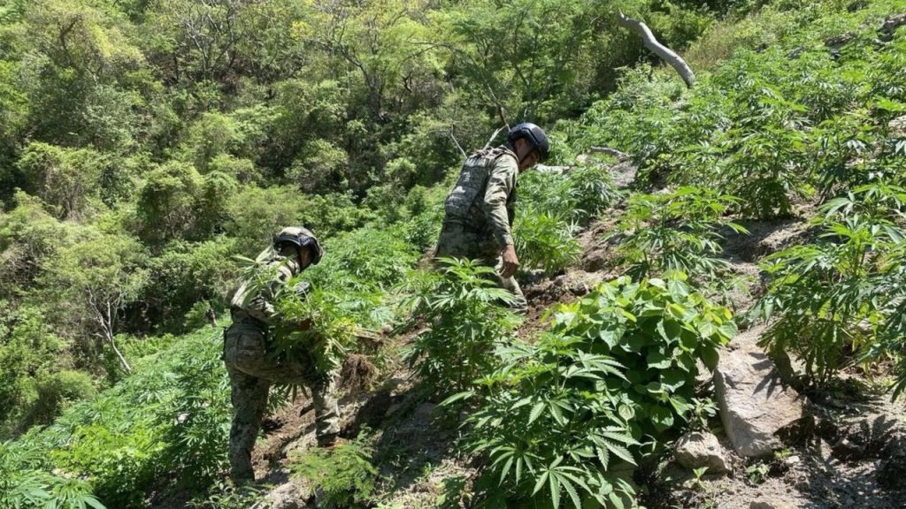 Por otro lado, en las localidades La Higuerita, El Aguacate, La Cofradía de Buenos Aires, El Charro, Los Mezquites, Ahuacatlán y Cacalután del municipio de Ixtlán del Río, se localizaron y erradicaron 24 plantíos de mariguana, en un área aproximada de 82 mil 525 metros cuadrados, “dando como resultado la destrucción en el lugar de aproximadamente 1 millón 601 mil 550 plantas, con un peso aproximado de 605 mil 618 kilogramos.