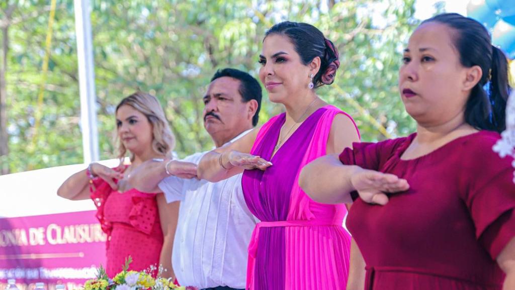 Bahía de Banderas Nay., 6 de julio de 2023.- Comprometida en todo momento con la educación en Bahía de Banderas, la presidente municipal, Mirtha Villalvazo, estuvo la mañana de este jueves en el cierre del ciclo escolar de la Telesecundaria Ramón Flores, ubicada en El Porvenir.