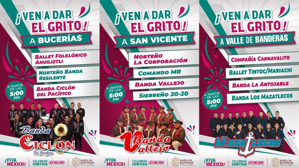 Bahía de Banderas Nay, 15 de septiembre de 2022.- Este 15 de septiembre el recorrido de la presidenta municipal dará inicio a las 7:30 de la noche en Sayulita, en donde la alcaldesa participará en una cabalgata; posteriormente partirá hacia Bucerías en donde cerca de las 8:30 dará el primer Grito de Independencia en la plaza pública de la localidad.