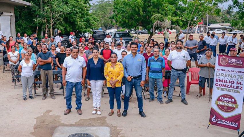 Bahía de Banderas, Nay., a 27 de junio de 2023.- Para mejorar la calidad de vida de al menos 230 familias que viven en la colonia Emilio M. González de Bucerías, la presidente Mirtha Villalvazo Amaya inauguró la obra de red de drenaje sanitario, que dará un giro importante en la calidad de vida de sus vecinos.
