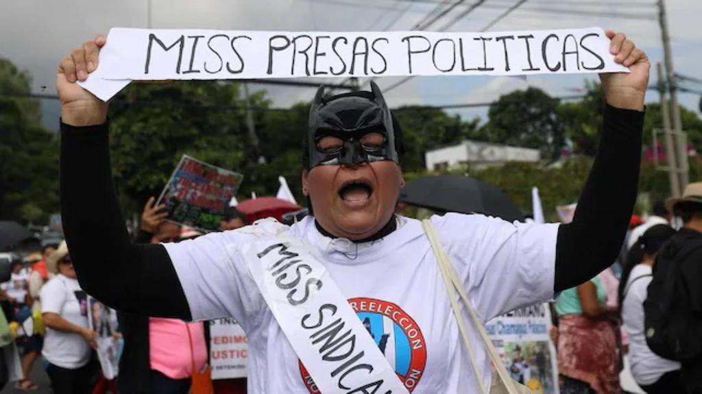 Luis Parada, candidato presidencial del partido opositor Nuestro Tiempo (NT), acompañó la manifestación y comparó el contexto actual en la nación centroamericana con lo sucedido en 1975, cuando El Salvador organizó por primera vez Miss Universo estando en dictadura militar.