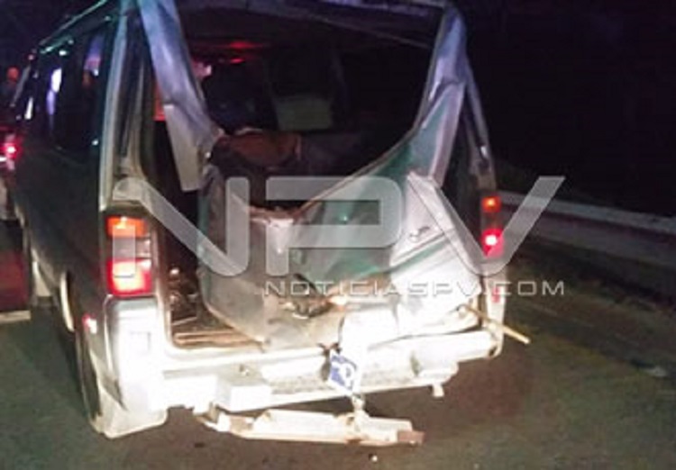 Se trata de una camioneta Mitsubishi, tipo “Combi” de color gris, modelo 1998, con placas de circulación de minusválidos, que era tripulada por una persona del sexo masculino identificado con el nombre de Arnulfo Benavides, de 62 años de edad, vecino de San Juan de Abajo, con domicilio conocido, el cual fue impactado en la parte trasera del vehículo por una motocicleta Honda de varios colores, al estar siendo empujada por dos mujeres, al parecer Madre e hija, pues se presume que la camioneta sufrió una falla mecánica y la querían sacar de la carretera para evitar que ocurriera algún accidente.